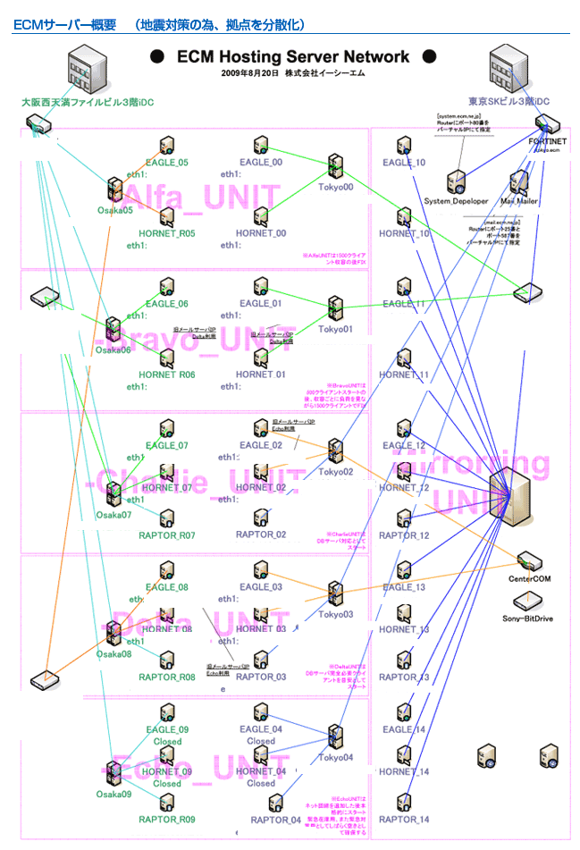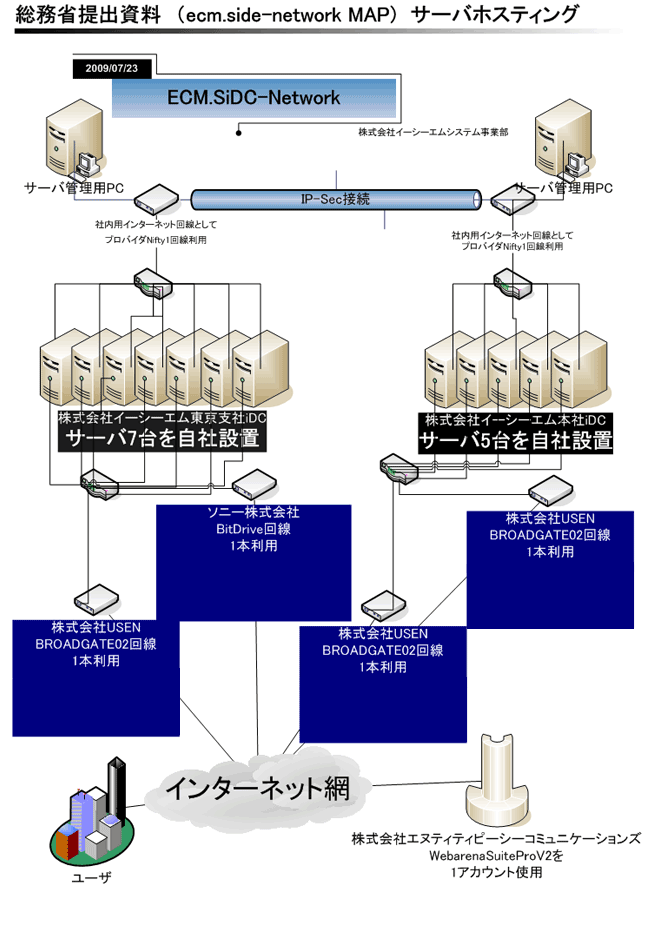 アメブロにある、イーシーエム被害者の会現れた「サーバ管理者」と名乗っている人の情報によると、このサーバは、雲行きの怪しくなった数ヶ月前より、USENの回線及びサーバを自費で用意し、サイト全体を引き取ったとのこと。